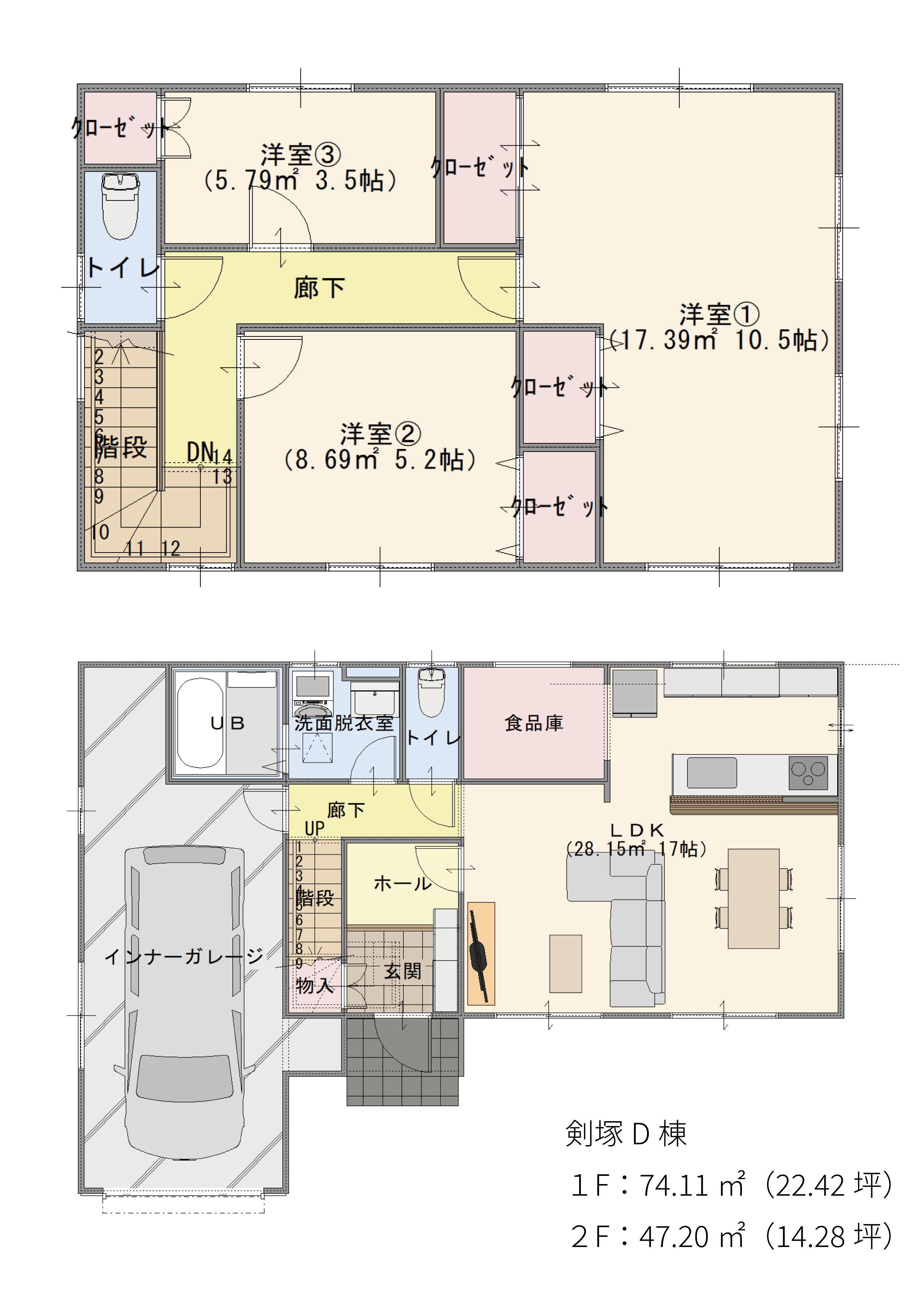 D棟 3LDK+S・インナーガレージ付き